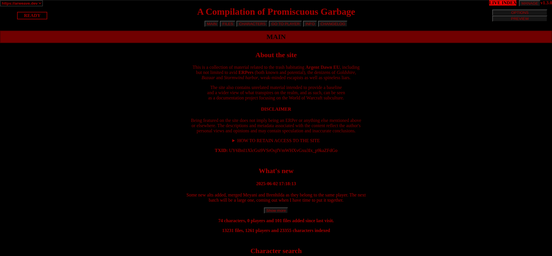 The actual page/site I rewrote from scratch multiple times, the latest of which took place in 2024-2025. It was this latest rewrite that brought it to Arweave, where it will hopefully prevail for long after I'm gone as an echo of a soul that lost too many of its shards.